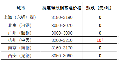 今日行情走勢為波瀾不驚,據(jù)西本跟蹤統(tǒng)計的69個城市建材報價,開盤持平市場占比84%,個別地區(qū)略有漲跌,午后鮮有變化;截至收盤,上海、杭州、南京等地主導資源價格波動0-10元/噸。據(jù)上海市場反饋,今天庫提小廠抗震螺紋鋼高低區(qū)間在3050-3060元,廠提永鋼螺紋鋼基價區(qū)間在3150-3160元/噸。