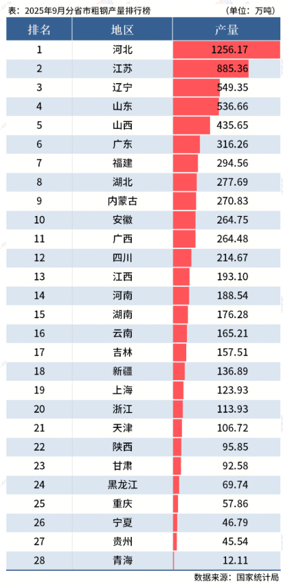 前三季度全國分省市粗鋼產(chǎn)量出爐