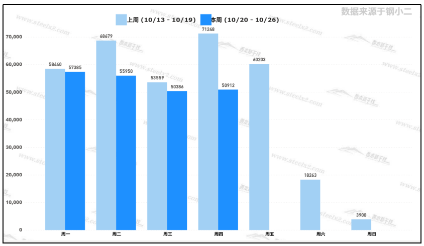 據(jù)鋼小二平臺(tái)樣本數(shù)據(jù),10月23日采樣全國(guó)工程需求量為50912噸,環(huán)比上個(gè)交易日微增1%。