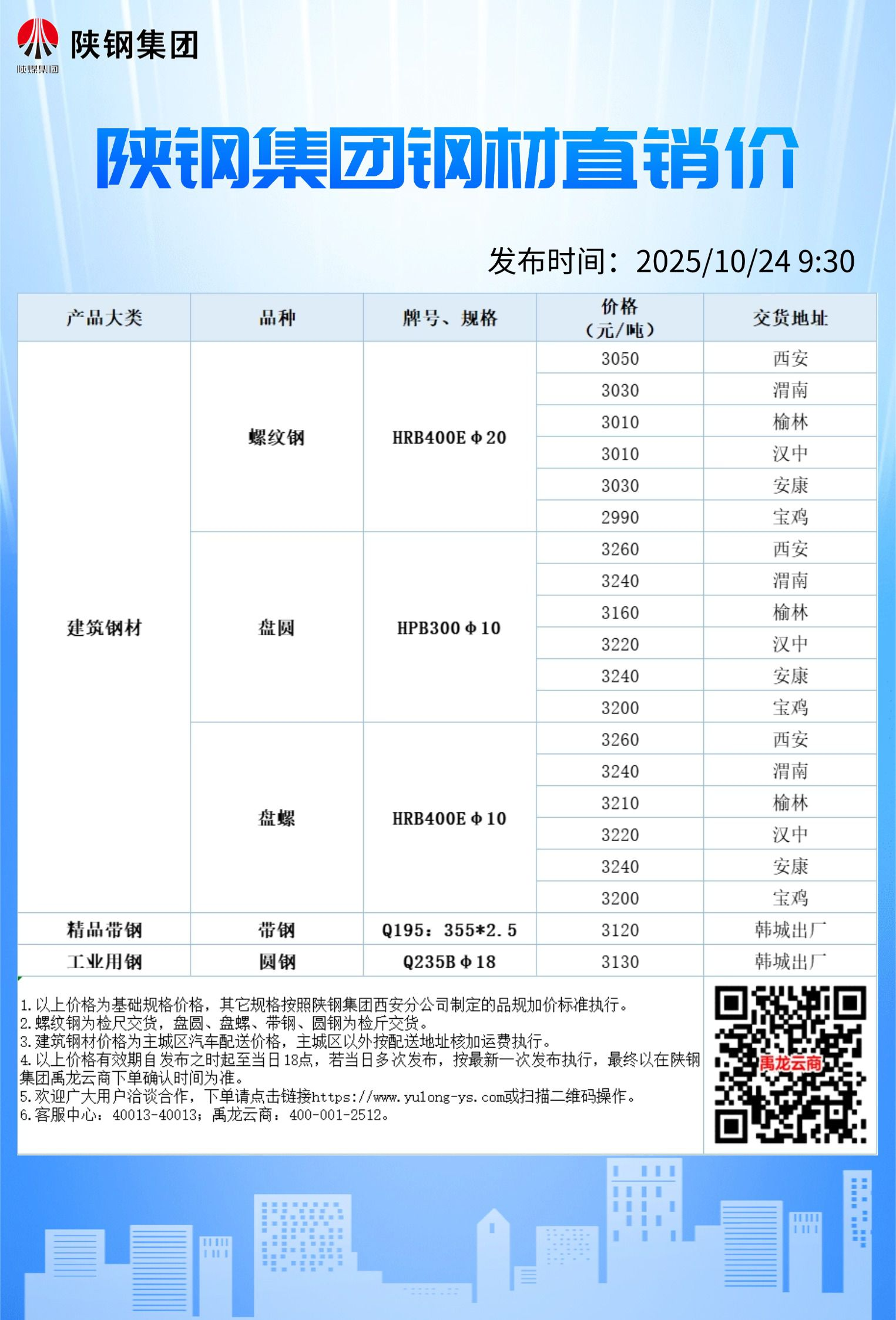 10月24日陜鋼集團(tuán)鋼材直銷價(jià)格信息