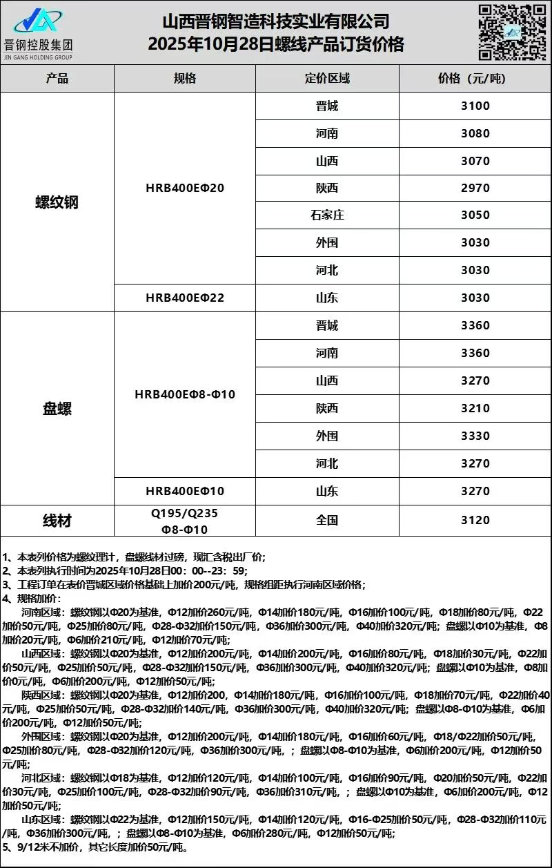 · 2025-10-2810月28日山西晉南鋼鐵調(diào)價(jià)信息