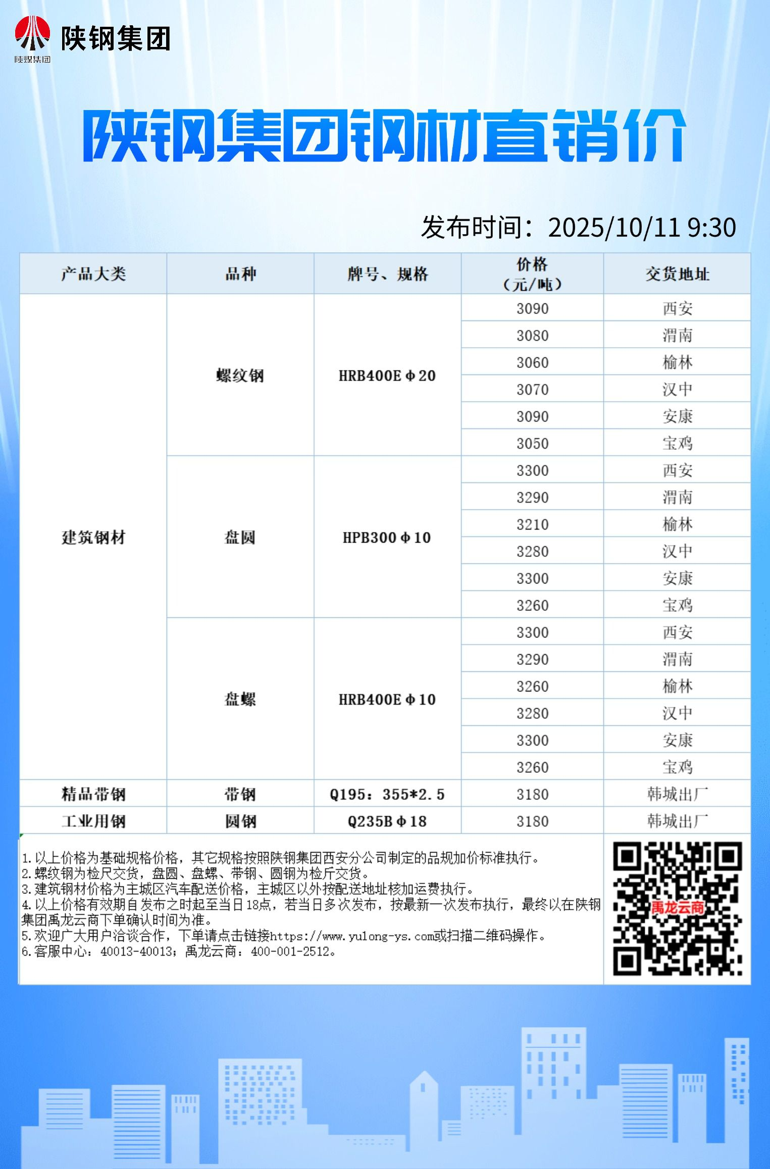 · 2025-10-1010月10日陜鋼集團鋼材直銷價格信息