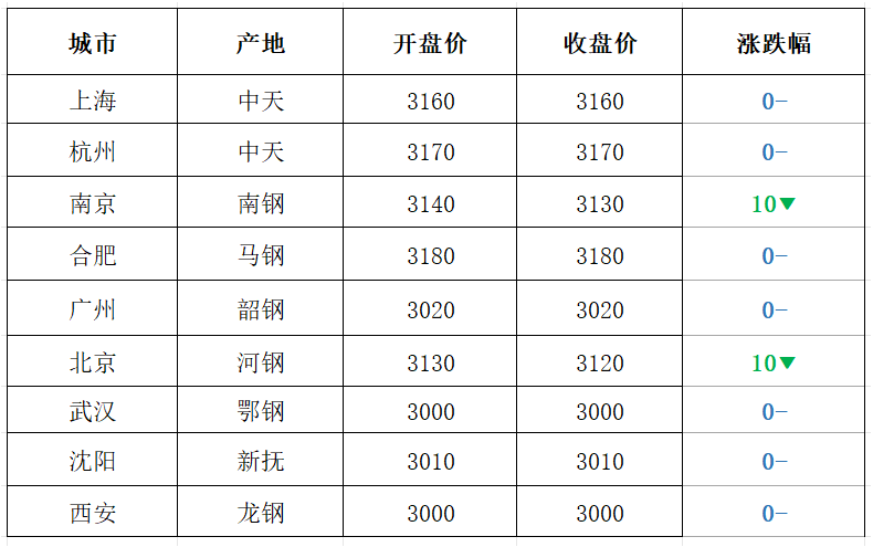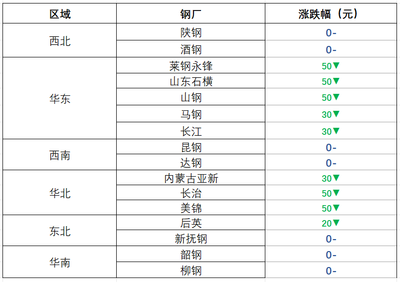 鋼廠方面:據(jù)不完全統(tǒng)計,上個交易日國內(nèi)家11家鋼廠建材出廠價格出現(xiàn)調整,調價鋼企全線下調。