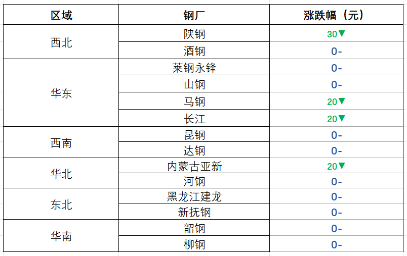 鋼廠方面:據(jù)不完全統(tǒng)計,上個交易日國內(nèi)家4家鋼廠建材出廠價格出現(xiàn)調(diào)整,多數(shù)鋼企維持平盤。