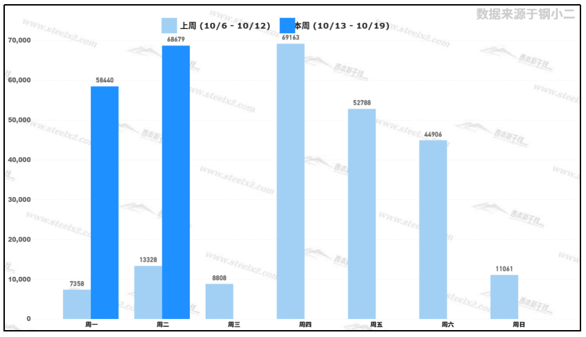 據(jù)鋼小二平臺樣本數(shù)據(jù),10月14日采樣全國工程需求量為68679噸,環(huán)比上個交易日上漲17%。