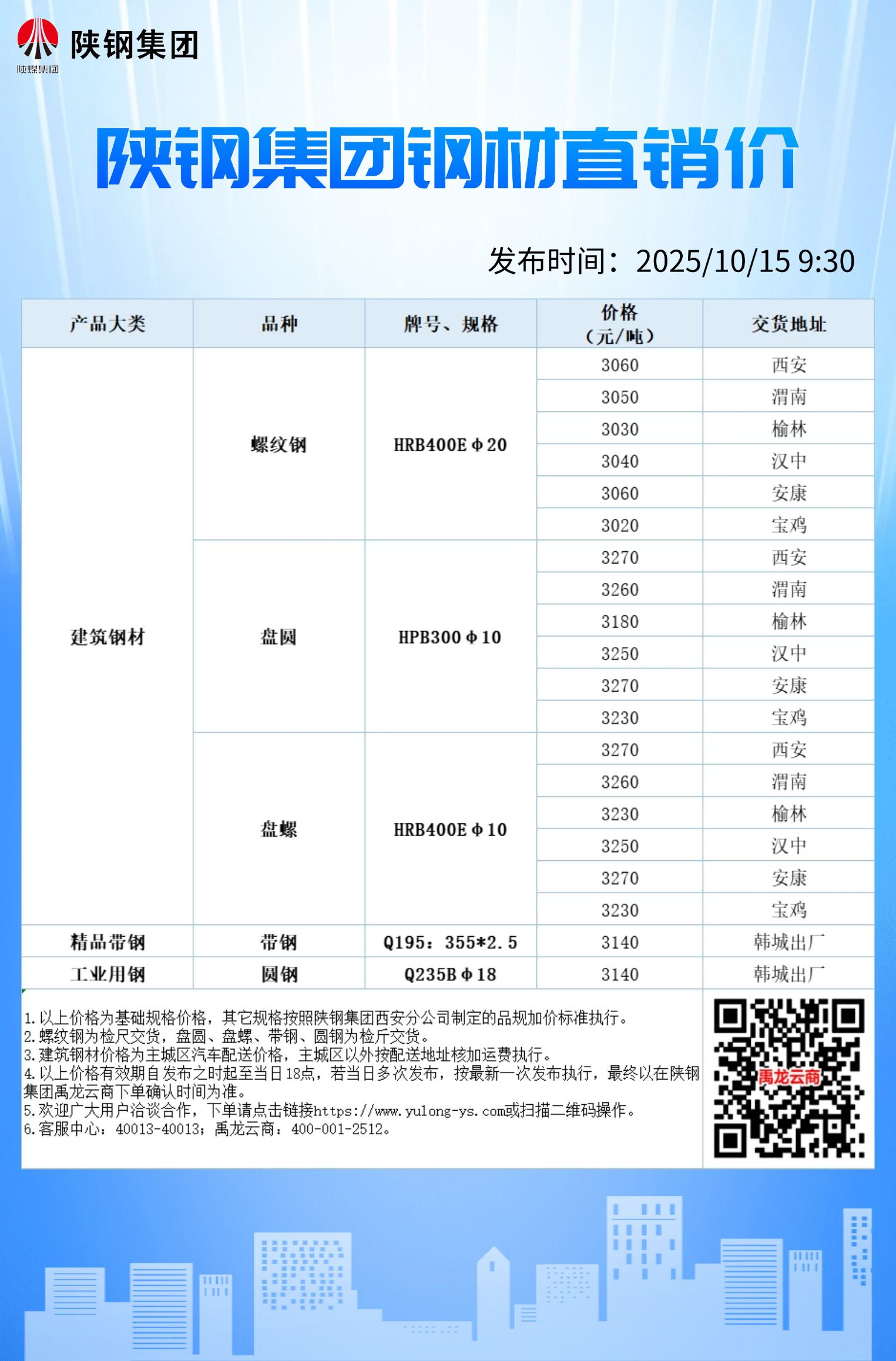 10月15日陜鋼集團(tuán)鋼材直銷價格信息