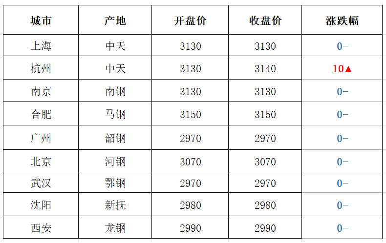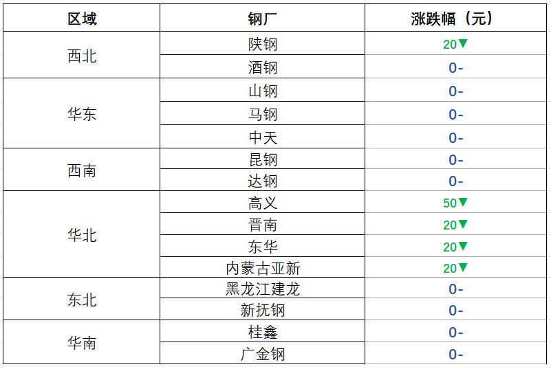鋼廠方面:據(jù)不完全統(tǒng)計,上個交易日國內(nèi)家5家鋼廠建材出廠價格出現(xiàn)調(diào)整,多數(shù)鋼企維持平盤。