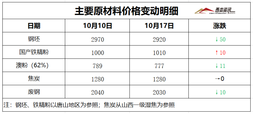 (1)上周國內(nèi)建筑鋼材行情弱勢下跌,截至10月17日,西本指數(shù)報在3400,周環(huán)比下跌50。